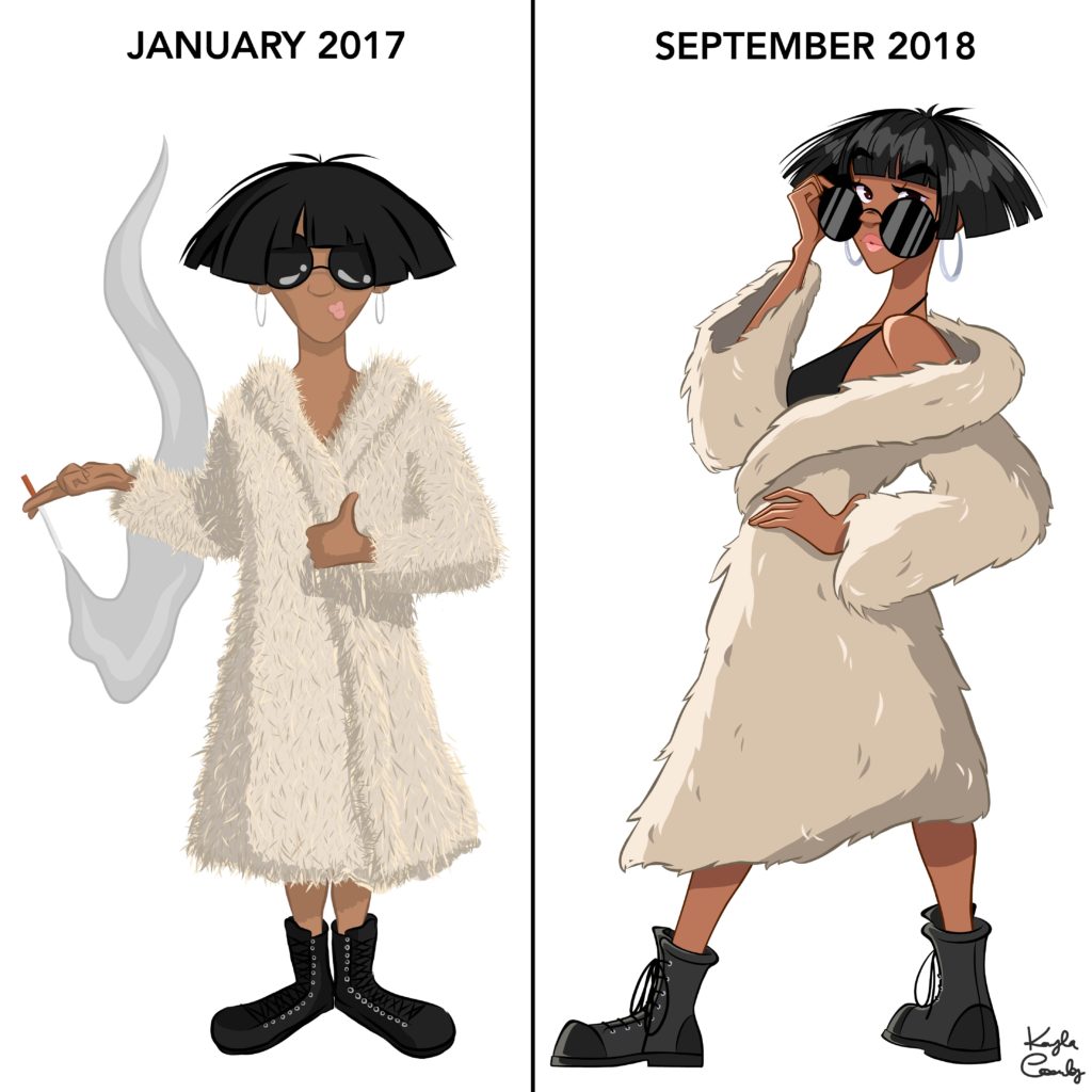 SHADY LADY This shady lady was a redraw of my first ever original digital character. I still loved her attitude and overall look so just wanted to give her a lil’ revamp.It took her 18 months to quit smoking but she got there in the end!